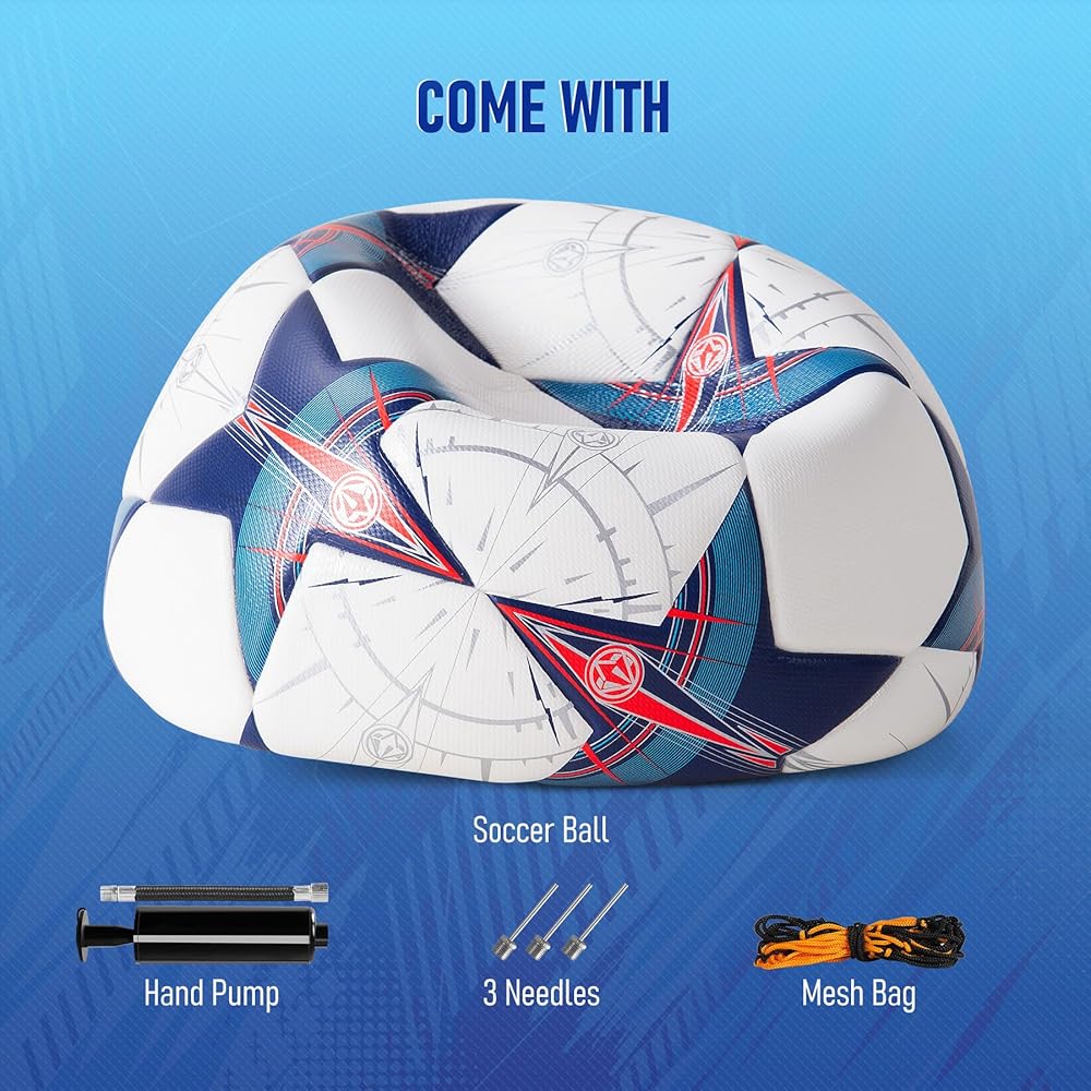 Soccer Ball Size 5, Professional Thermal Bonded Match Training Football with Seamless Waterproof PU Cover, Durable Outdoor Soccer Ball, Includes Pump and Mesh Bag
