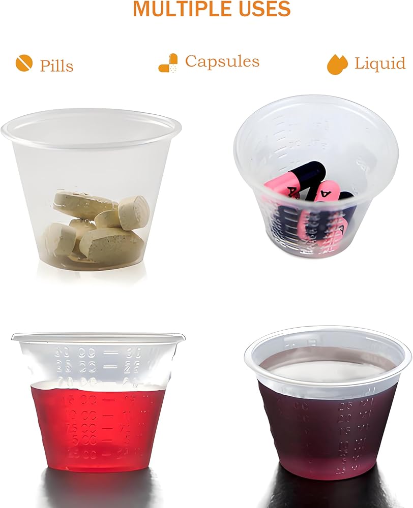 Transparent & Lightweight: The crystal-clear body of the disposable graduated plastic medicine cup allows for easy identification of its contents. Whatever is inside is clearly visible at a glance.