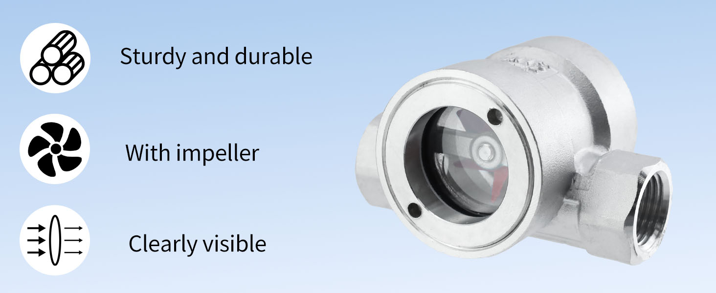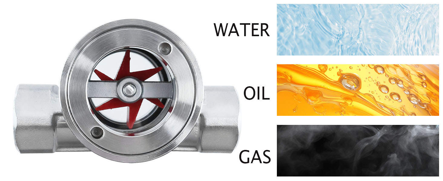 - Package includes 1pcs sight water flow indicator with impeller,horizontal dual use for easy installation or disassembly.