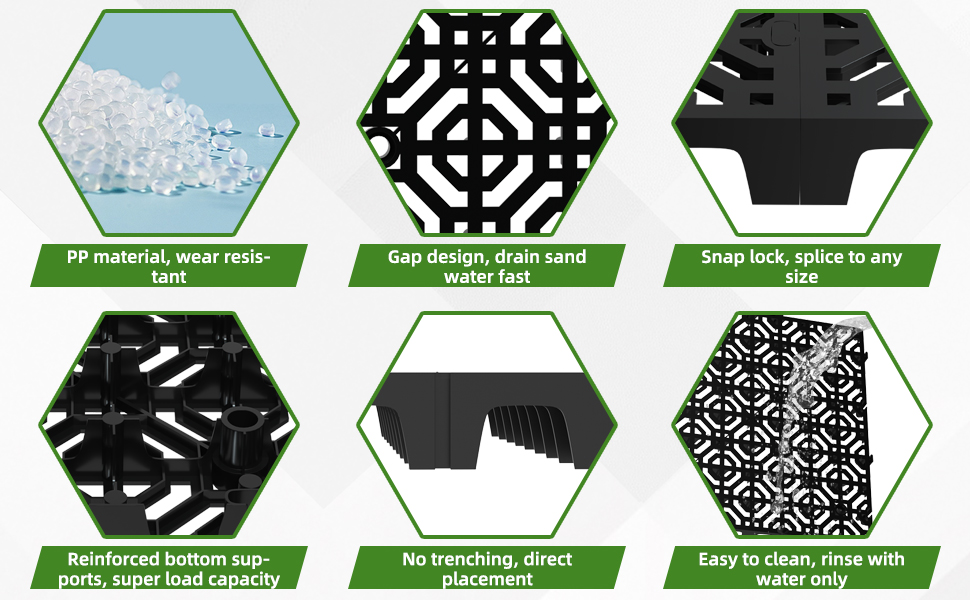 Protects Lawns and Soil: The grid design evenly distributes vehicle weight across the surface, preventing ruts and damage to the grass underneath. Grass stays healthy and green even after repeated traffic. You can park on your lawn without ruining it while maintaining the natural landscape