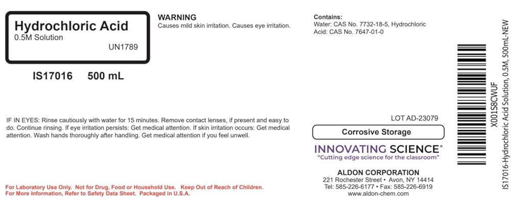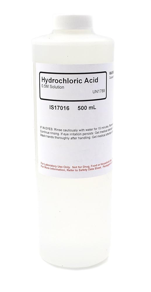 Innovating Science's 0.5M hydrochloric acid comes in a 500mL bottle. Often used for acid-base reactions, refinement, and pH control, this makes the chemical a perfect fit in any educational lab dealing with chemistry or biochemistry. Each bottle has safe handling and storage procedures printed directly on the bottle. This is a high quality chemical product manufactured in the United States.