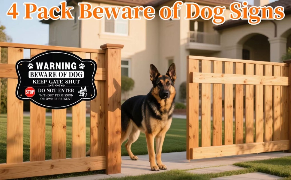 5.【WIDELY APPLICABLE】: Each package includes four beware of dog signs, which are ideal for places that require multiple warnings. You can easily place them in your yard, at your door, on roads, paths, gardens, lawns, fences, or windows. The dog warning signs serve as both a reminder and a visual deterrent, helping to ensure the safety of your property and others.