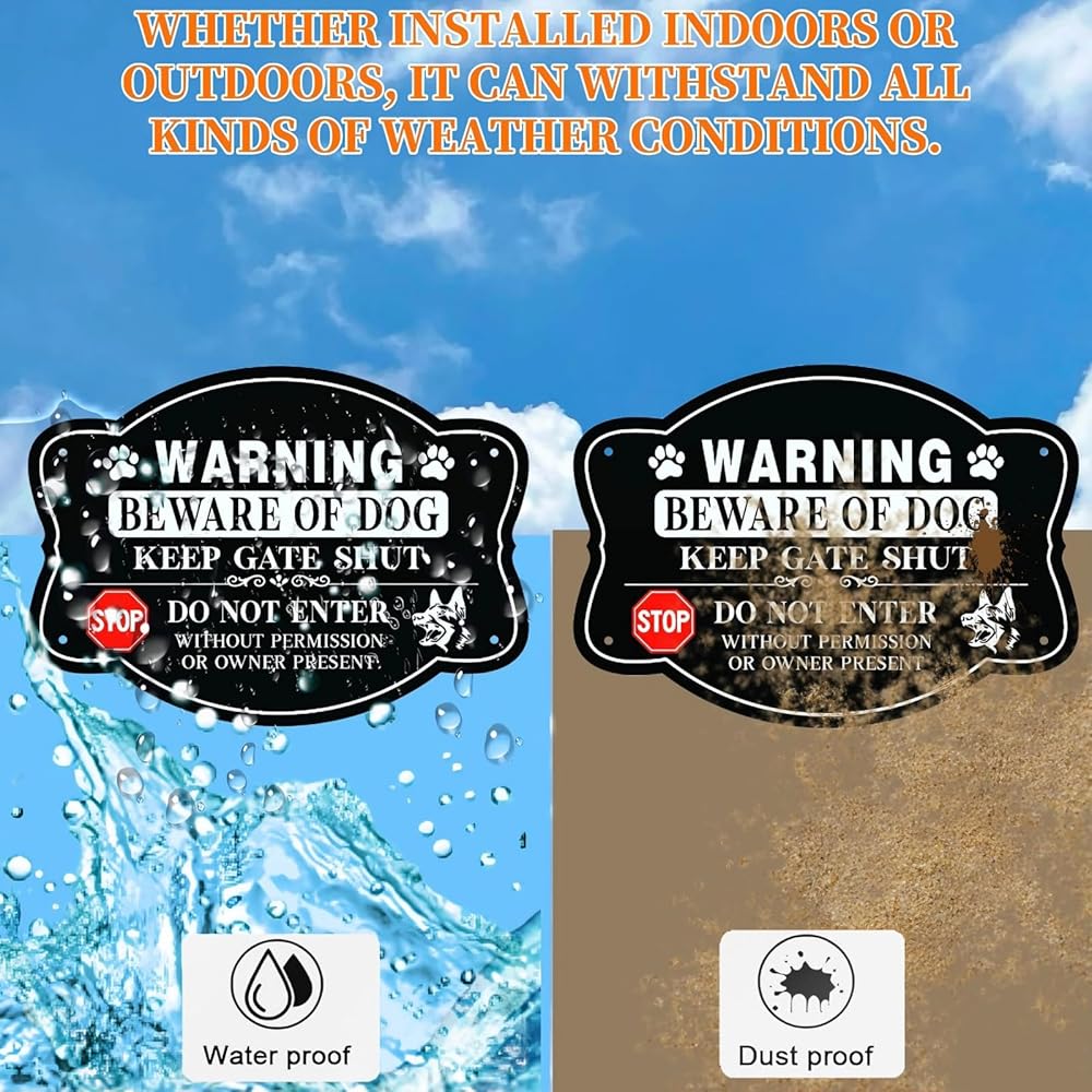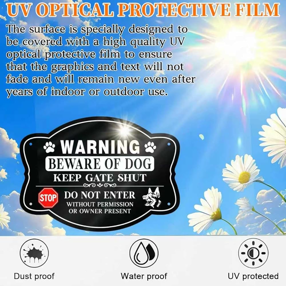 2.【HIGHLY VISIBLE IN ANY WEATHER】: the outer layer of our Beware of the Dog sign is made of highly reflective film material, the pattern, text and background color can reflect the light, with reflective and UV protection, to ensure that it can be highly visible in any weather conditions.