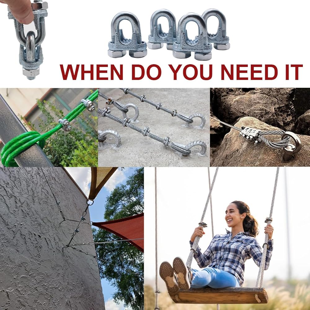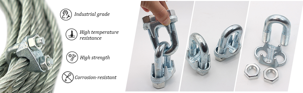 ANTI-SLIP GROOVE: The wire rope cable clip clamp adopts a special U-shaped design, and the inner wall groove has an anti-skid texture, which effectively increases friction and prevents the wire rope from slipping