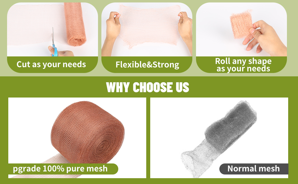 💪 MULTIFUNCTIONAL DESIGN: Our copper mesh rolls come in a wider design that is not only functional but also versatile; with two sizes of approximately 5 inches x 33 feet & 58 inches x 33 feet, this copper mesh rolls can be adapted to fill a variety of gaps and holes; whether it's used in a home, an office, a garden, or a workshop, this product meets the needs of a variety of environments