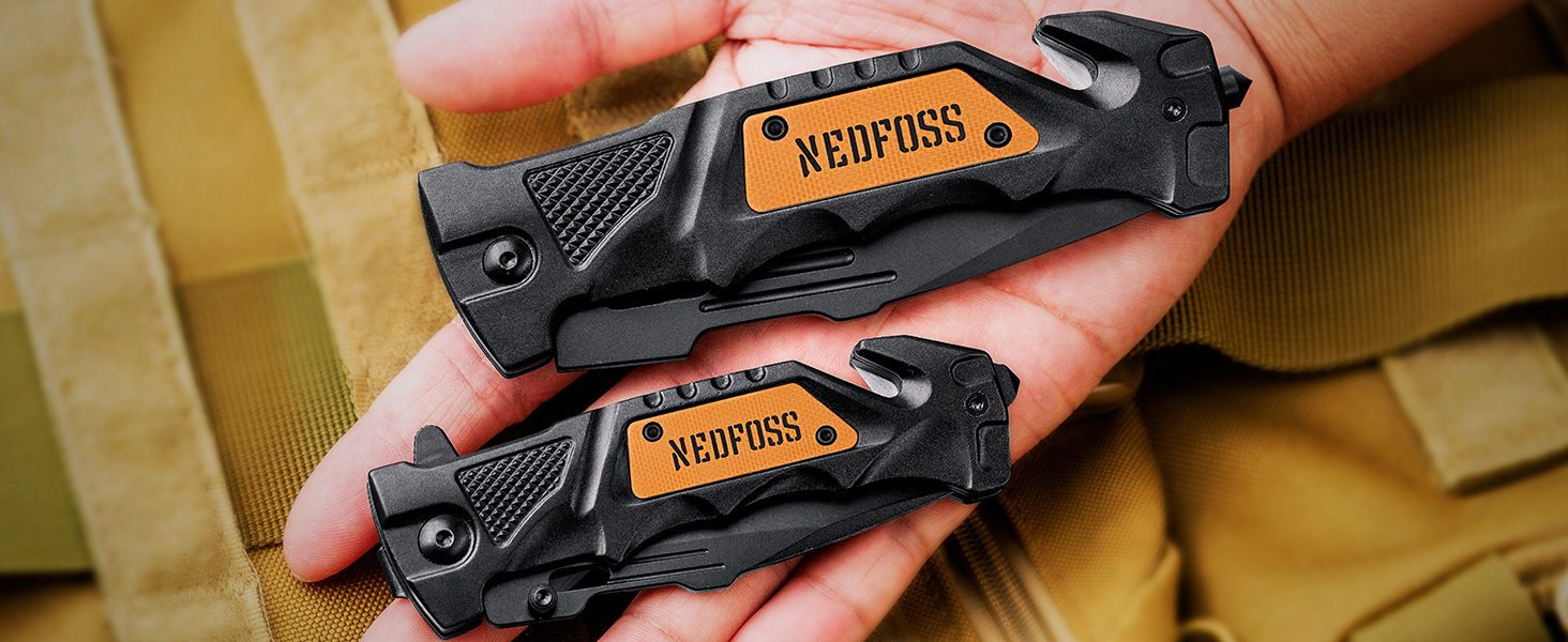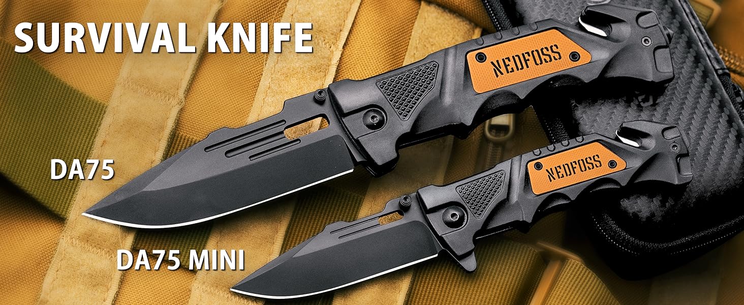 NedFoss Pocket Folding Knife DA75, 3 in 1 Pocket Knife Gifts for Men Women, Survival Knife with Liner-Lock Belt Clip, Seat Belt Cutter, Glass Breaker, Hunting knife for Camping Hiking