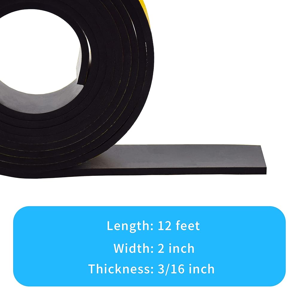 RUBBER STRIPS SHEETS ROLL-Includes a roll black adhesive soild neoprene rubber strip 3/16 (.187)" Thick X 2" Wide X 12'Long