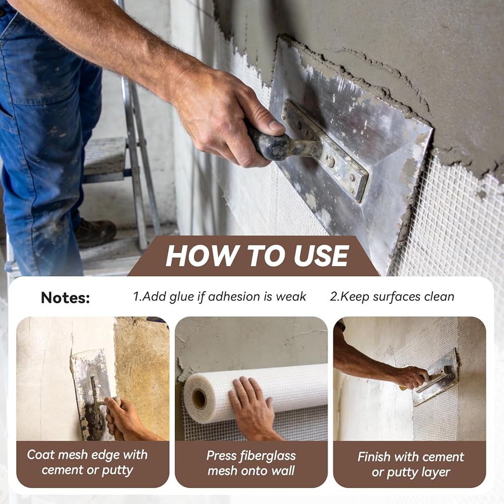 ✂️【Adaptable Use】: The fiberglass mesh can be trimmed to the required dimensions. It is suitable for addressing cracks and adapting to surfaces that are not perfectly flat.