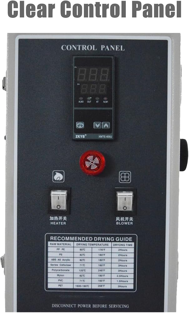 Temperature Control: This plastic drying machine has uniform hot air distribution. The drying efficiency is high. The temperature difference can be controlled within ±3 degrees