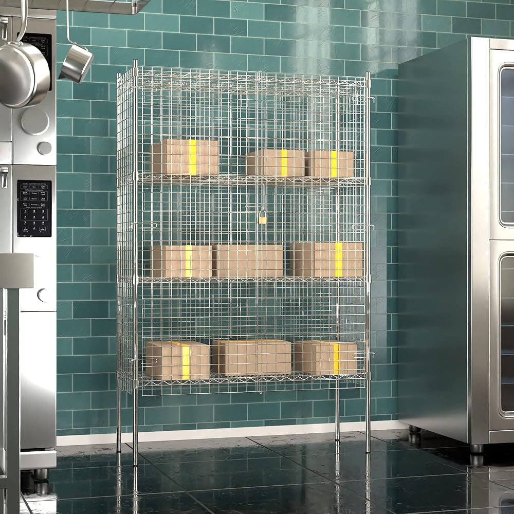 PLACES OF USAGE: This robust security cage offers versatile protection in various locations. Use it in commercial kitchens and dishrooms to safeguard valuable inventory or in restaurants to securely store delicacies.