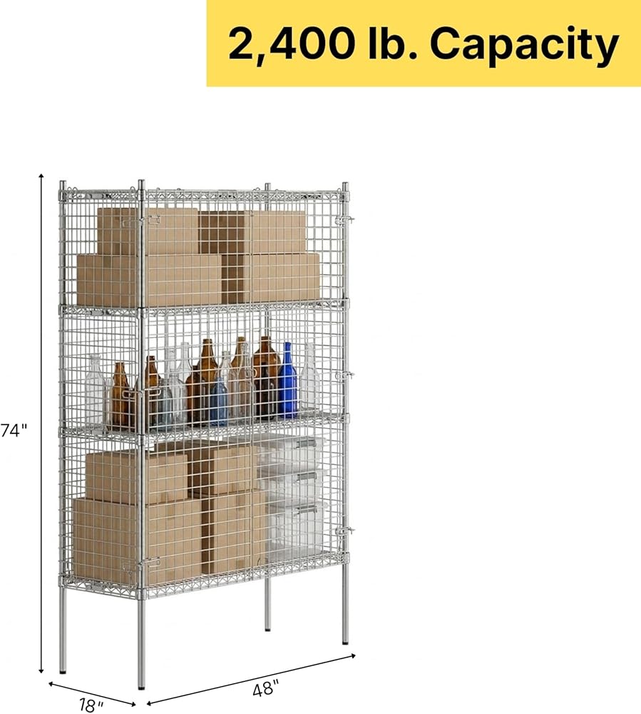 SIZE AND CAPACITY: Color/Finish: Chrome; Capacity: 1320 lb. (Individual Shelf Capacity: 600 lb.); Material: Metal Wire; Usage: Dry Environments; Dimensions: 48" (L) x 18" (W) x 74" (H); NSF Listed; Ships unassembled.