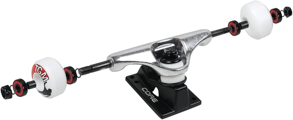 Core trucks are light weight and feature heavy duty aluminum with grade 8 steel kingpins and axles, as well as USA made bushings and pivot cups. 52mm 99A are the perfect wheels for both street and park skating.