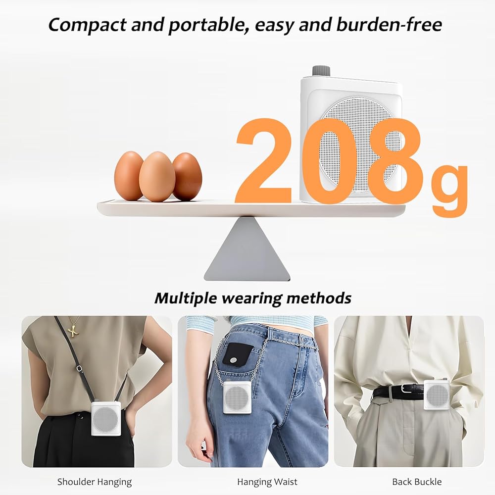 Lightweight & Portable: Weighing only 8.05oz(208g), this portable microphone and speaker is compact and easy to carry. Comes with an adjustable strap so you can wear it comfortably around your waist or sling it over your shoulder
