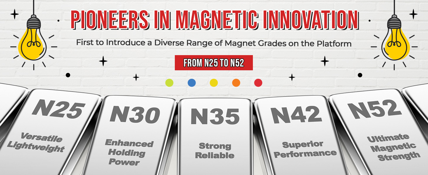 Choose the Perfect Magnet for Your Needs: Our selection of N-graded magnets, ranging from N25 to N52, caters to a variety of applications. Whether you need a magnet for lightweight decorative tasks or more practical uses, we have the right option to suit your project requirements.