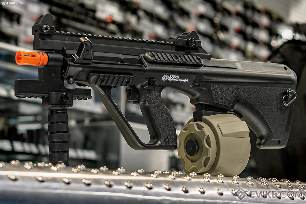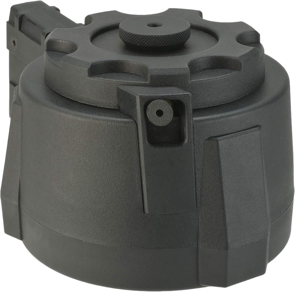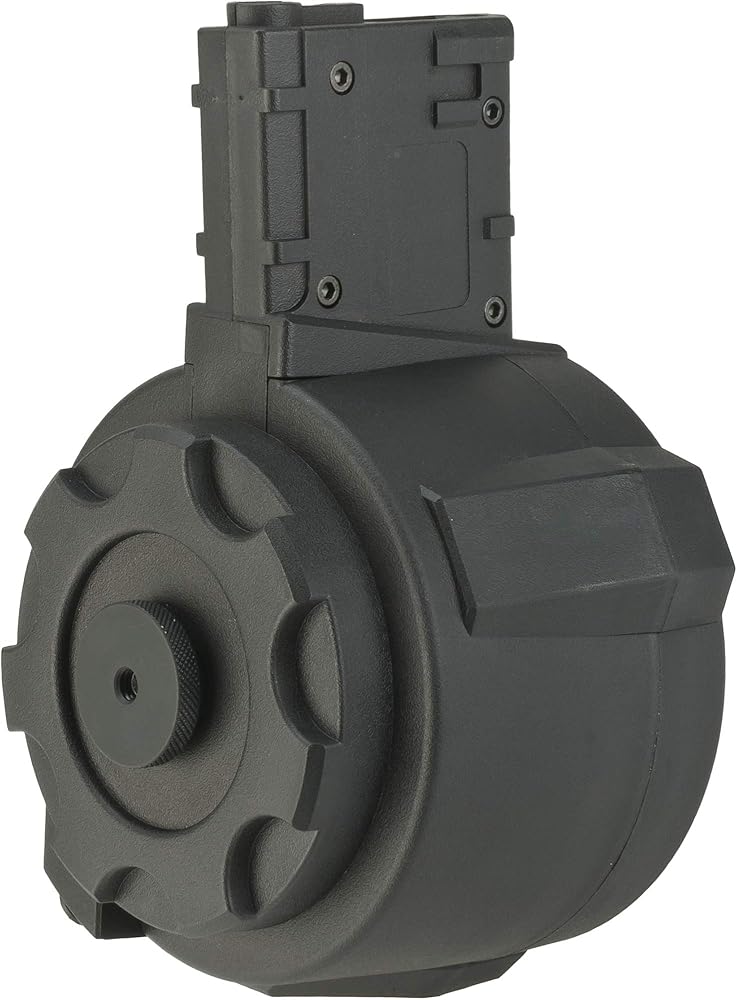 Flashmag design offers high speed ergonomic winding without additional power source Compact design doesn't alter weapon profile. Modular design allows for easy replacement of worn out components Constructed from lightweight and heavy-duty USA DuPont polymer material, exported to Taiwan specifically for molding these magazines Compatible with Firestorm mag adapters for various AEG platforms Optimized internal design provides consistent feeding and performance 1500+ rounds high capacity Ribbed body improves loading and unloading manipulations The Angel Custom Firestorm Drum magazine represents the pinnacle of research and development in the search for a compact, reliable, high capacity Airsoft magazine. The Firestorm takes the high capacity capability of popular electric winding drum magazines and replaces the jamming prone electric motors with the popular operator manipulated flashmag mechanism improving the overall reliability and feeding capability of the magazine. Unlike most other high capacity drum style magazines on the market, the Firestorm is not tied to a single weapon platform. Angel Custom offers the adapters for the firestorm separate, allowing for it to be used in M4/M16, AK and G36 style Airsoft AEGs, one magazine, three different weapon types. Compact in design, lightweight in construction and devastating in capacity, the Firestorm provides the ability to offer SAW style suppressive fire without SAW size and weight.