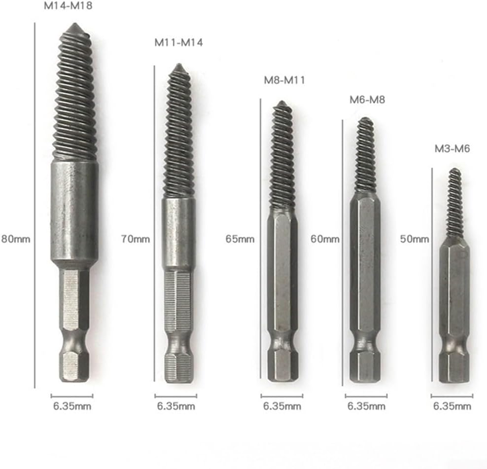 *Comprehensive 5-Piece Set: Includes five different sizes of hex screw extractors, ensuring the right tool is always at hand for a variety of removal jobs.