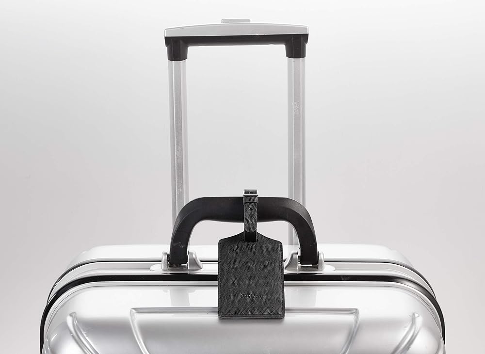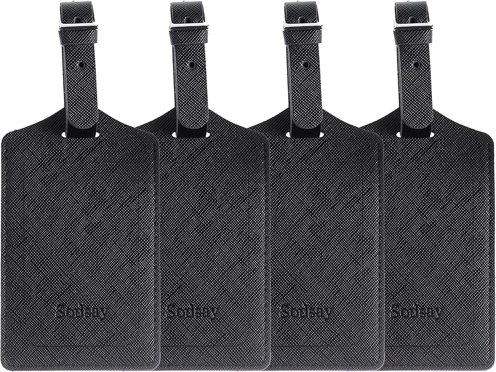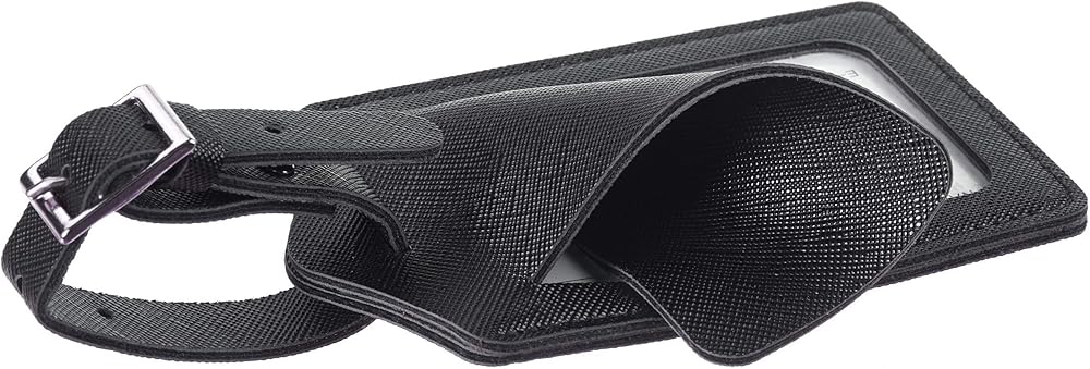 4 LUGGAGE TAG: this is a set of 4 luggage tags, which is enough to label all luggage for a family trip; MATERIAL: Crosshatch vegan leather, classy and durable; PRIVACY PROTECTION: there is a privacy flap on each of the luggage tags and so strangers will not have access to your personal information; TRAVEL SURVIVOR: all the key components of this travel tag has been enforced so that the tags can survive the most demanding travel environment: 1. the buckle has been upgraded to 304 stainless steel and is extremely strong; 2.extra stitching has been applied to the loop, and it is almost impossible to break the tags from your luggage; 3. the tag is made with double-layer leather, and the bag tag is hence much more stronger; ONE YEAR WARRANTY: free return or exchange for any product defect during production or delivery.