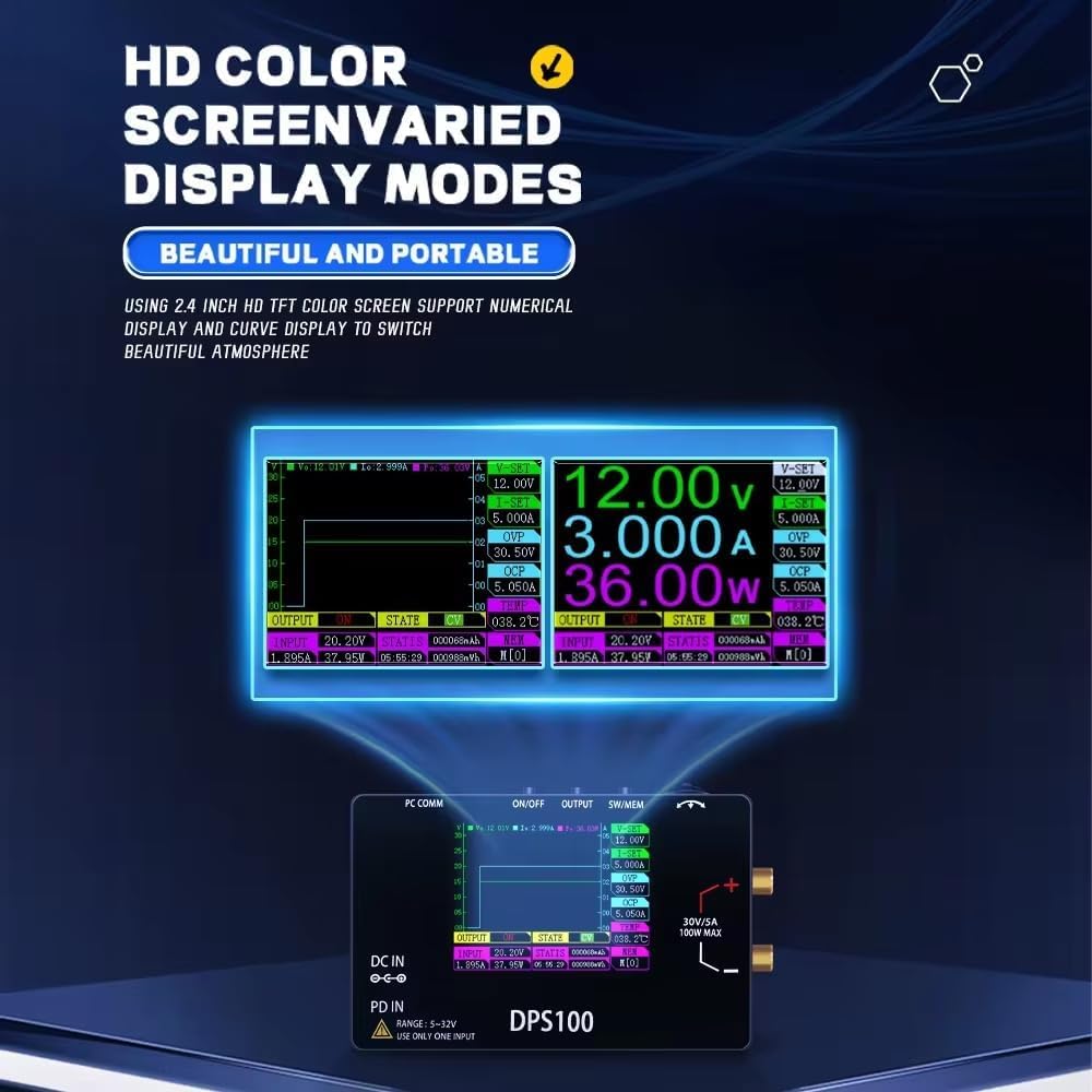 2.4-inch high-definition color screen, supports switching between digital mode and waveform mode; built-in comprehensive input/output protection mechanisms (8 types); supports input voltage and current measurement for convenient monitoring of input status.