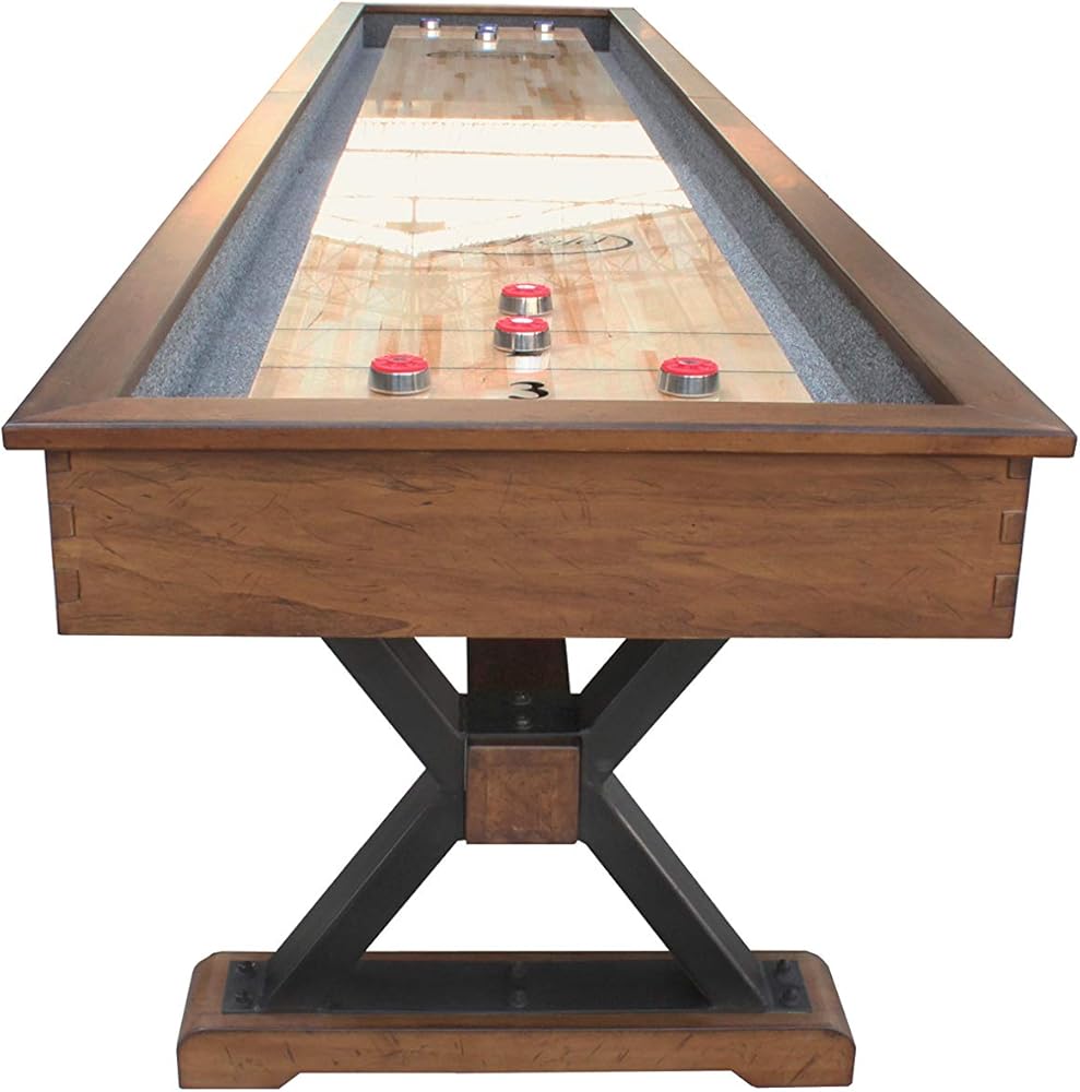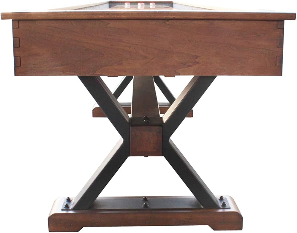 The Santa feel shuffleboards are part of the Pro-Series Fairfield collection of game tables by Playcraft. The Santa fe's rugged steel x legs combine with distressed hardwood stained in a rich cocoa Bean to complete the popular rustic industrial design style and sure to be make a statement in your game room. More than just beautiful furniture, the high-quality materials and construction will ensure many years of enjoyable shuffleboard games with family and friends. Optional two-piece playfield available for locations with difficult access