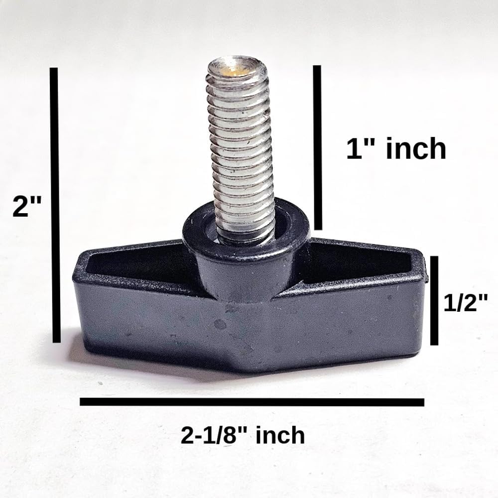 Product Quality: 4/pcs Body Material: Hard heavy-duty plastic Other Material: Steel Color: Black (polished) Size: Head Diameter= 2-1/8" inch (55mm) Thread length: Screw thread length 1-inch (25mm) Thread: Male 3/8-16 Used: Industry machinery-Home....etc