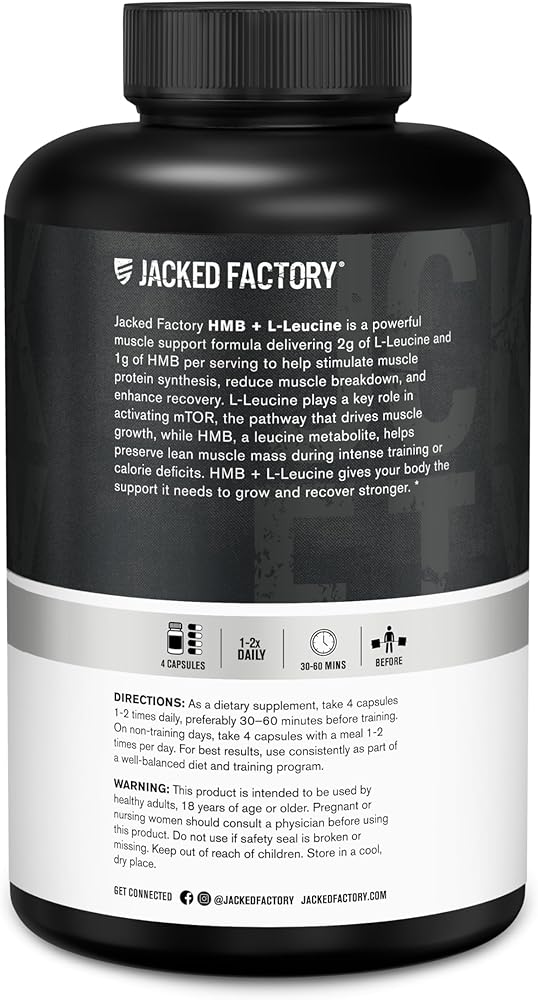 Backed by Research, Built for Results: Jacked Factory HMB + Leucine Capsules combine two of the most effective ingredients for preserving and building lean muscle — 2g of L-leucine and 1g of HMB per serving. Science-backed formula supports protein synthesis and helps protect muscle mass during training, dieting, or recovery.