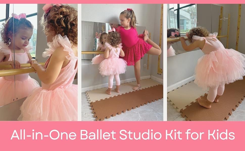 Your Baby's First Step into a Beautiful Future Every ballerina's journey begins with one small step—and this kids ballet barre set is made to celebrate that magical moment. Whether your little one is learning to stand or just discovering the joy of movement, this elegant set transforms early development into the start of something extraordinary. At Artan Balance US, we believe every child deserves the chance to move with joy, express themselves freely, and grow with confidence. Whether she dreams of center stage or simply loves to twirl in the living room, our products are thoughtfully designed to support those precious early milestones—from first steps and wobbly balance to graceful spins and proud little performances. Inspiring Little Dancers from Their Very First Step Whether she's standing on tiptoes for the first time or practicing graceful routines, this ballet barre and mirror set creates a space where dreams take shape. From the nursery to the home studio, it's more than décor—it's a foundation for growth and self-expression. A Ballet Studio That Grows with Her The 4ft wall-mounted barre offers babies and toddlers the support they need to pull up, stand, and balance. As your child grows, it becomes her own barre for posture, flexibility, and dance practice. Confidence Begins in the Reflection Seeing her own movement builds spatial awareness and self-esteem—nurturing pride in every twirl, step, and stretch. Soft, Safe, and Beautifully Designed The cushioned non-slip mat helps protect little feet and reduce slips. High-quality materials and elegant finishes add charm and purpose to any space. Where Dreams Begin This all-in-one ballet set supports your little one from her earliest steps to her proudest performances—because every star dancer starts somewhere. Whether it lives in a nursery, a bedroom, or a dedicated playroom, it supports your little one from her earliest steps to her proudest performances.