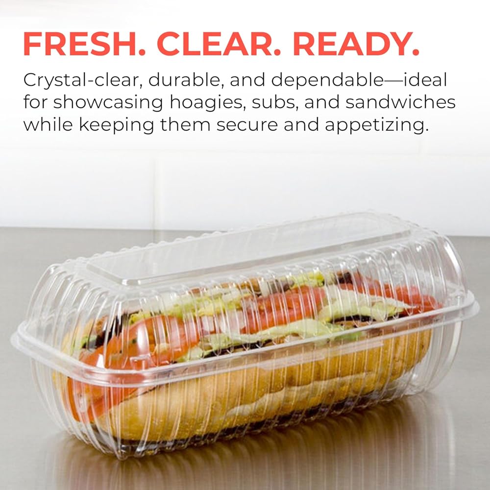 🥖 Perfect Fit for Hoagies & Subs – Each 10x5x3 inch container is designed to hold full-size hoagies, subs, wraps, or hot dogs. Ideal for delis, sandwich shops, bakeries, and meal prep.