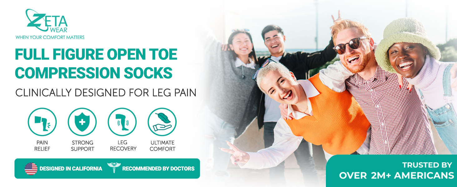 At Last, Short Length Open Toe Compression Socks That Actually Fit: Tired of tight compression socks that pinch, squeeze, chafe, and dig? Try our superior calf sleeve; Anatomically designed for plus-size women, these soft, stretchy sleeves perfectly follow the contours of your calves; Result: firm yet comfortable compression for calves up to 26"