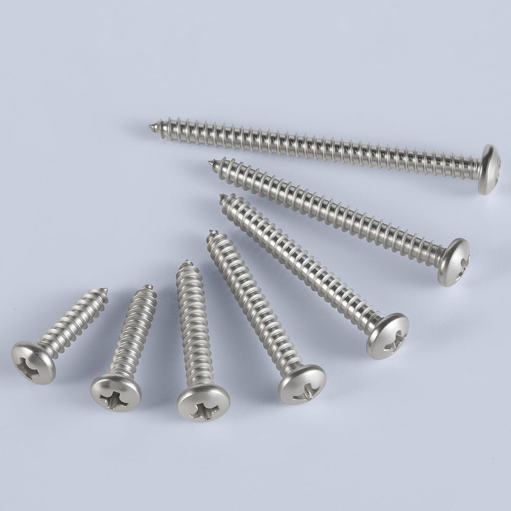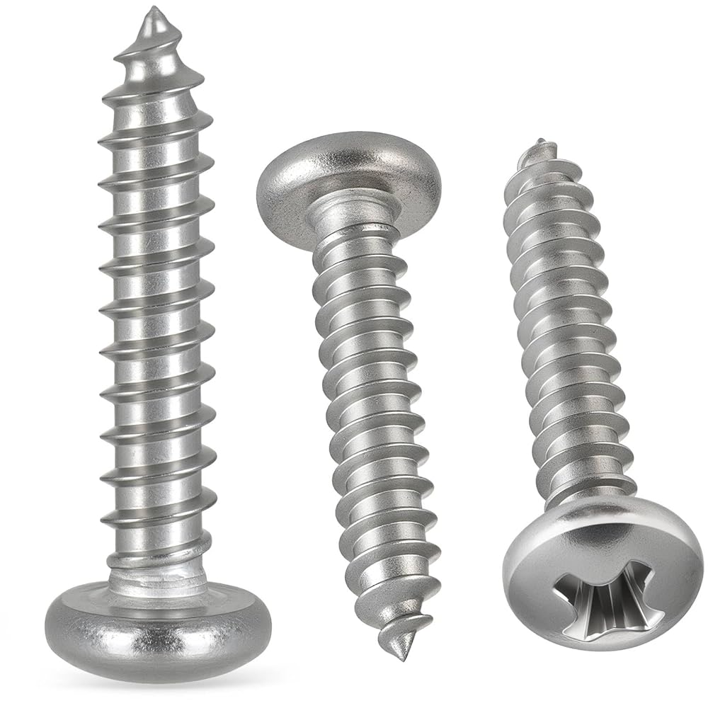304 Stainless Steel18-8:Packaged 120pcs #8 x 3/4" pan head wood screws,features a sharp,pointed thread that bites effortlessly into thin materials—metal,plastic,or wood,resistant to corrosion and rust,high-strength,maintains shape,and provides firm hold.