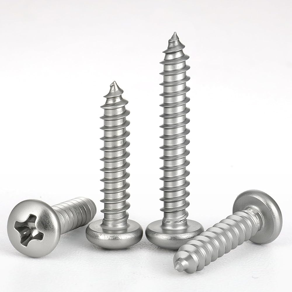 Pan Head&Sharp Self-Tapping Point:This sheet metal screws no pilot hole needed,fast cuts,drives fast, bites deep, reduces splitting, better clamp load than round head,flatter than truss head,,deep drive recess,phillips #2 bit.