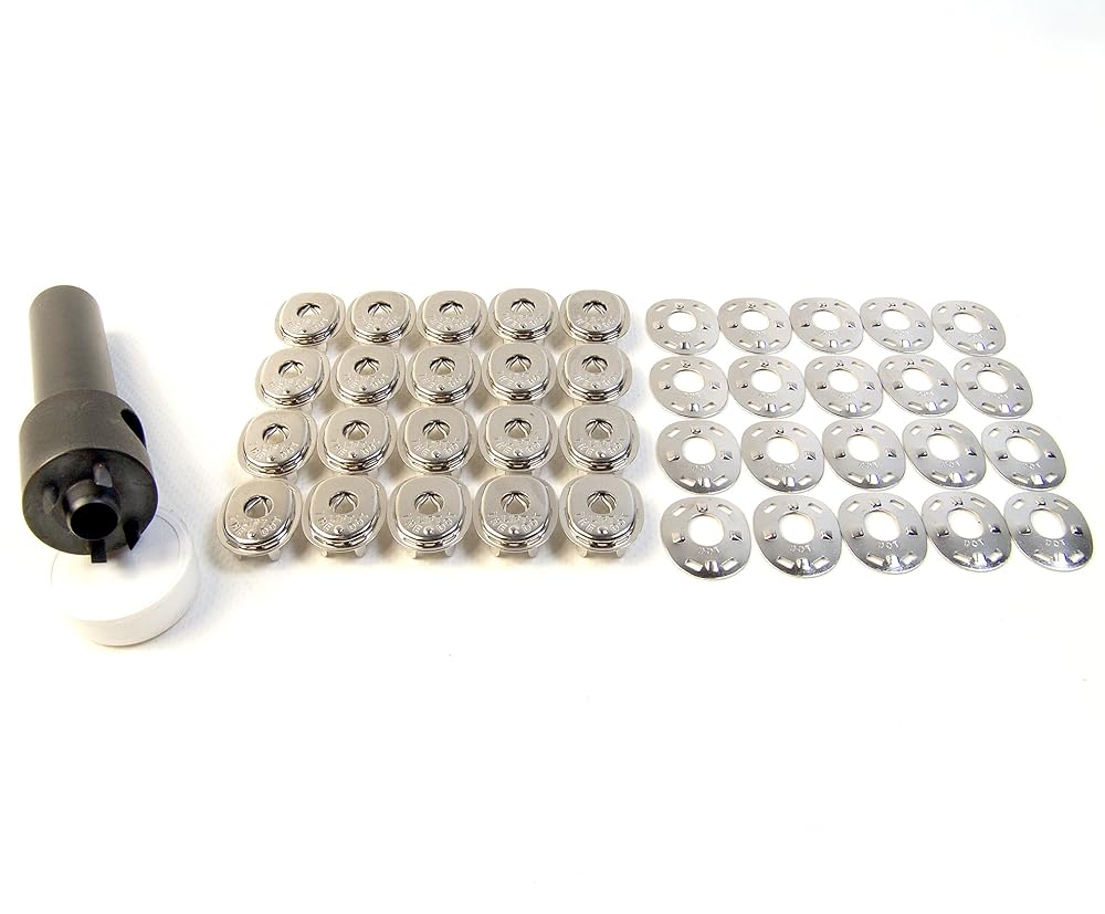 Brand new Lift The Dot Fastener 20 Piece Set with the Eyelets, these fasteners are constructed of nickel plated brass and are designed for fresh and salt water environments. They are marine grade. Questions? Send us an e-mail here on Amazon. We try to answer all questions within 24 hours. Northwest Tarp & Canvas - Bellingham, Washington