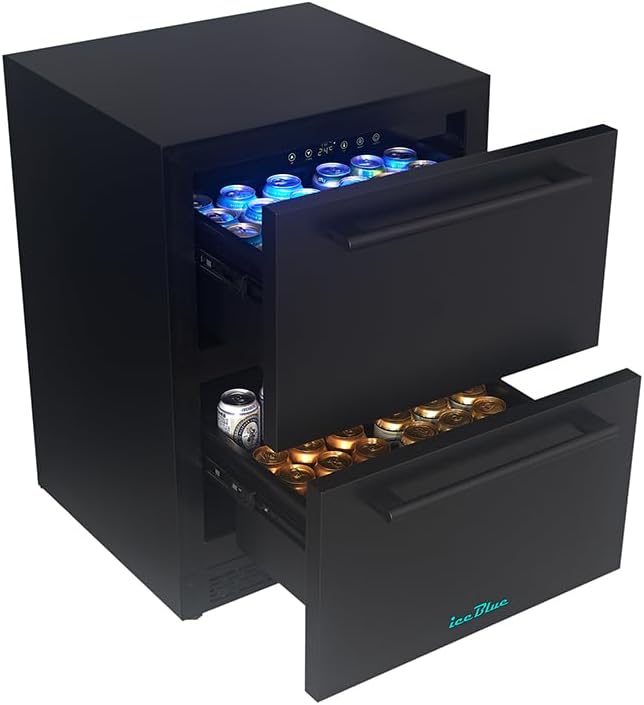 【Transparent Glass Door】iceBlue wine cooler mini fridge glass door on this mini refrigerator maintains consistent temperature for optimal wine storage. This beverage refrigerator drink fridge black trim included for a sleek and modern style
