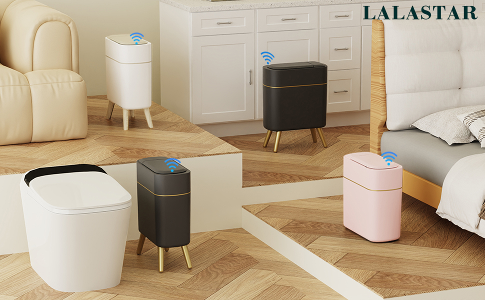 Waterproof & Moisture Resistant Design: IPX5 waterproof technology prevents moisture or water spills from damaging the unit, which enables the black garbage can with lid to be used in the bathroom or humid environment.