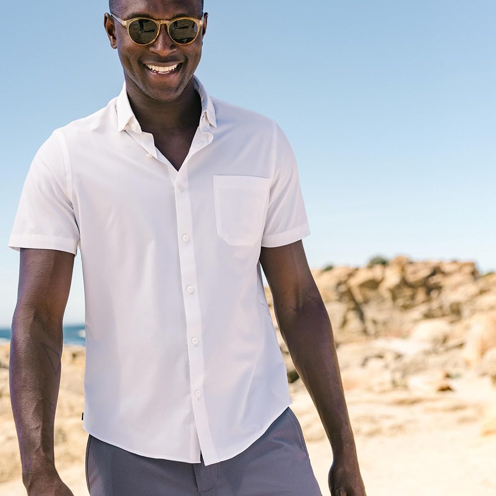 Rethink Dress Shirts: Our short-sleeve shirts for men are designed to be worn untucked and are around 2"" shorter in length than our regular dress shirt, catering to the fashionable businessman who craves style and comfort