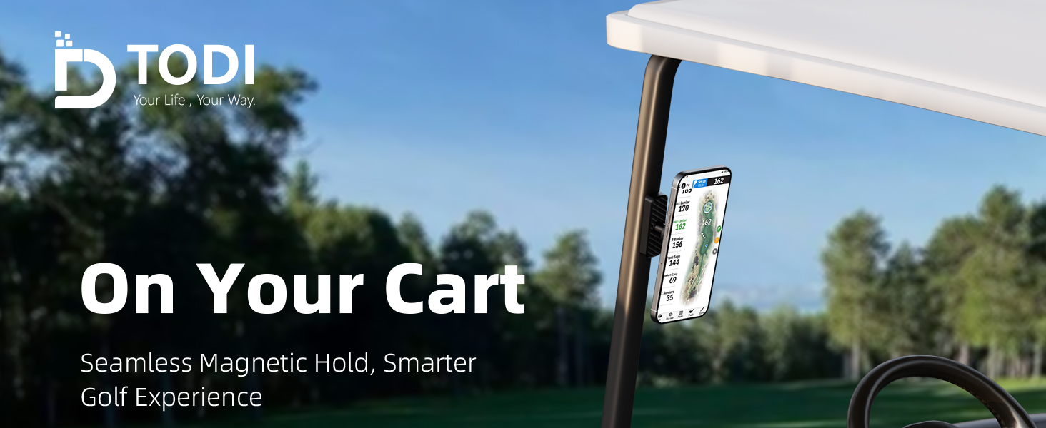 TODI Magnetic Golf Cart Phone Holder – Compatible with MagSafe iPhone 16 15 14 13 12 Pro/Max/Plus, Fits EZGO Club Car Yamaha Icon, Golf Gifts for Golfers Men, Dad, Grandpa