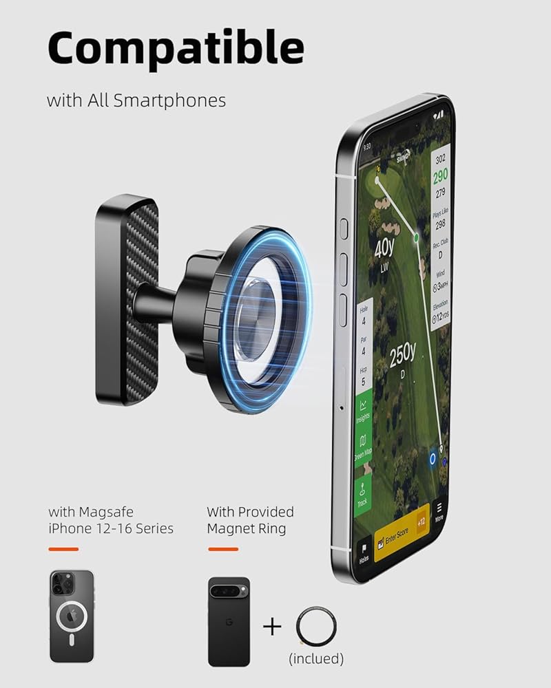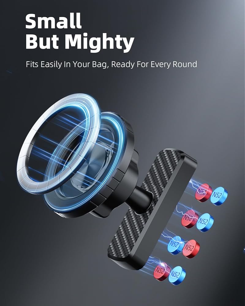 Super Strong Magnetic Hold: Built with 8 heavy duty N55 magnets on the base and 20 precision N52 magnets on the front, this golf phone holder delivers unmatched stability. Your phone stays secure even on bumpy fairways.
