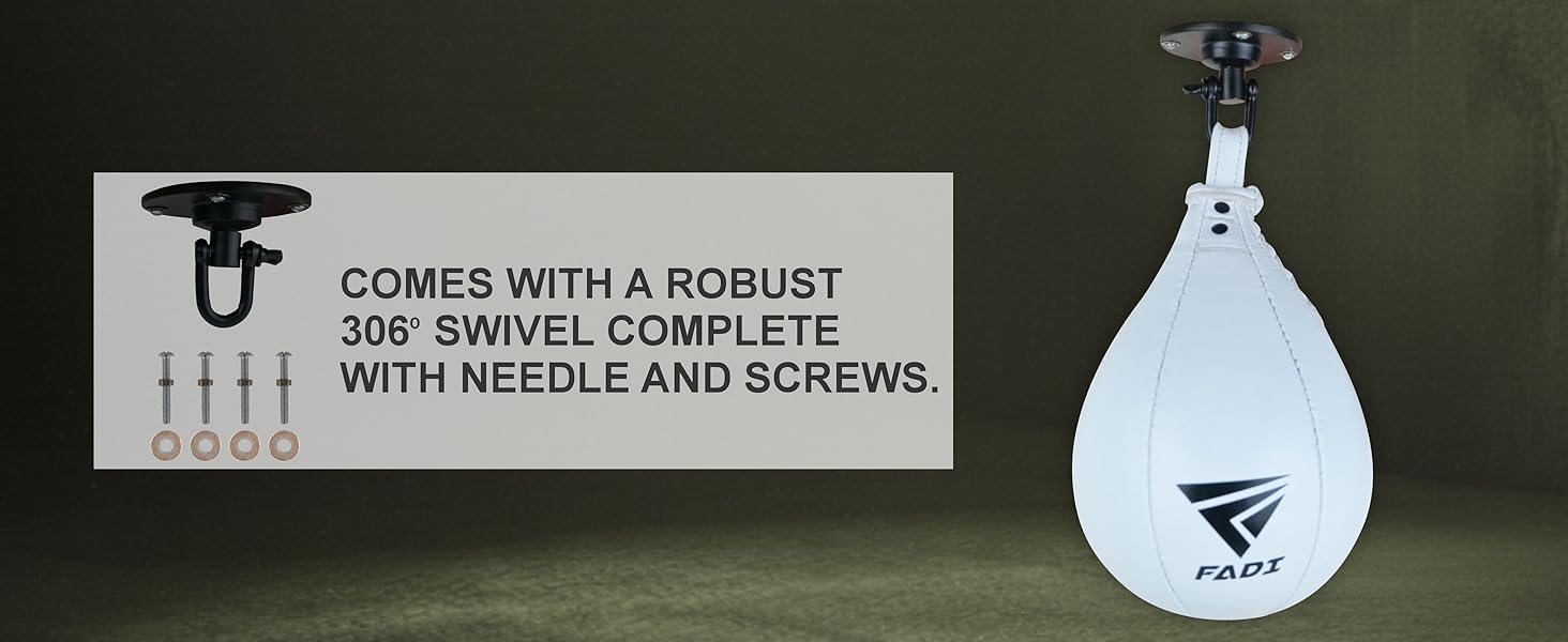 • Premium Swivel Attachment: Equipped with a durable, high-performance swivel that ensures fast, responsive movement—perfect for enhancing rhythm, timing, and striking accuracy in boxing and combat training.