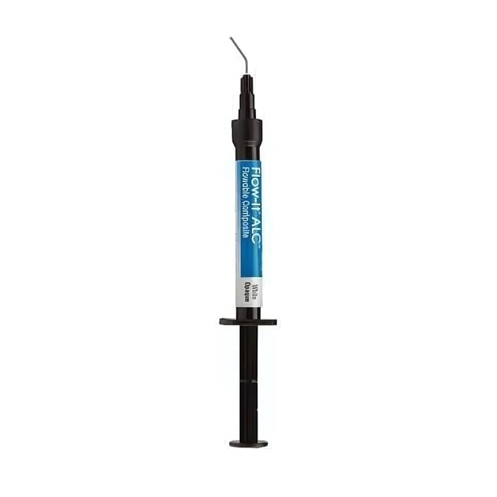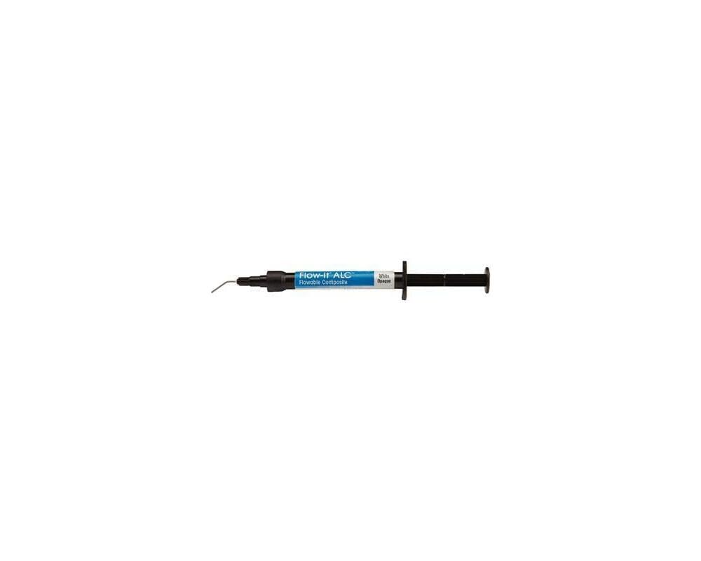Flow-It ALC - Extra Light White Opaque Flowable Composite Syringe Refill. Accelerated Light-Cure Composite. Syringe Refill: 1 mL Syringe and 5 Tips. Enhanced handling characteristics. Improved adaptation during placement. Rapid light cure polymerization. Ideal for most types of restorations. Flow-It ALC (Accelerated Light Cure) is a flowable composite with outstanding adaptability that produces strong restorations after only 10 seconds of light curing, or 3 seconds using a high-powered light. The composite formulation features unmatched handling properties that facilitate quick flowability without slumping for convenient placement.With this level of viscosity, Flow-It is ideal for nearly all types of restorations. Available in a wide variety of shades for better color matching.Each Syringe Refill contains 1 (1 ml) syringe, 5 (20-gauge) bent needle tips, and instructions.