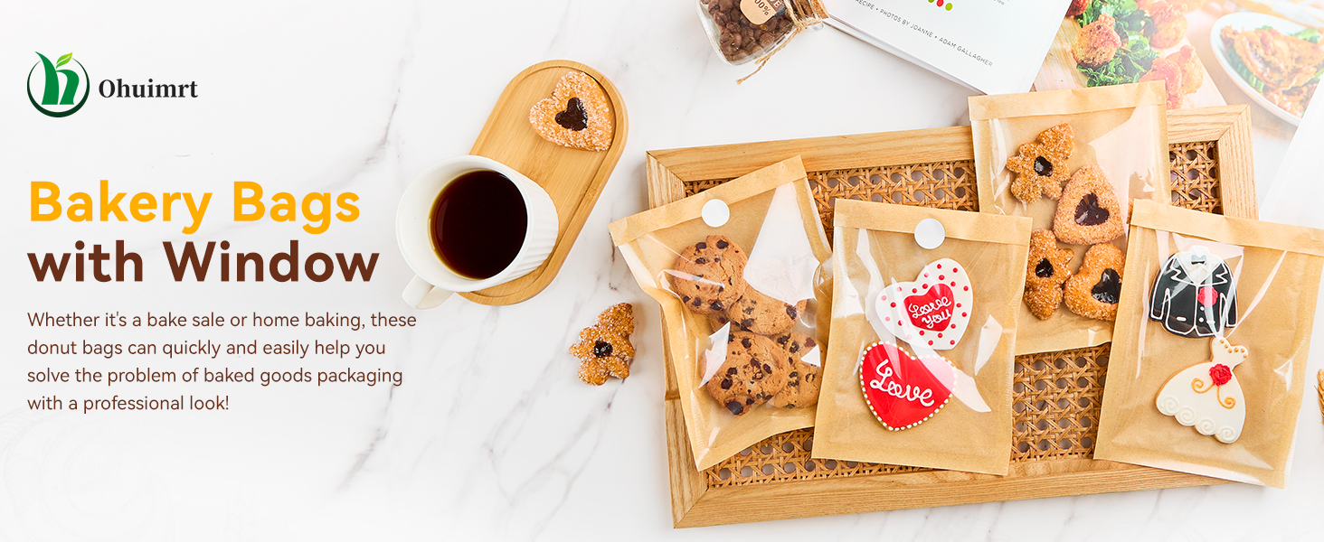 Premium Material: Our donut bags are made of food grade kraft paper and PET plastic, which are BPA free, odorless, sturdy and have clear front window to greatly display delicate desserts