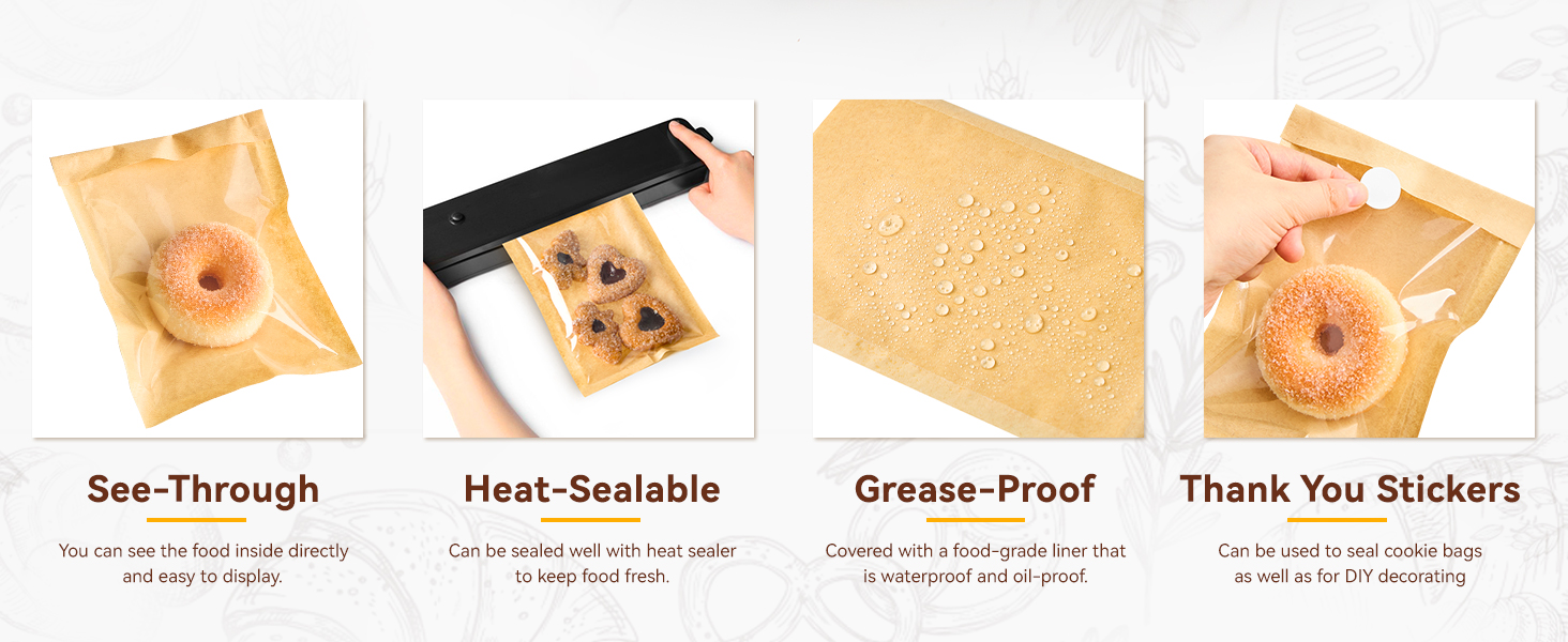 Cookie Bags with Seal: You will get 100pcs paper cookie bags, measuring 5.1 x 7.5 inches and 120pcs round stickers