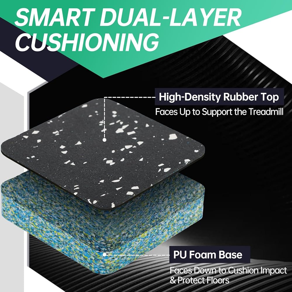 Secure & Anti-Slip Support – The rubber top layer grips treadmill and walking pad feet firmly, keeping equipment in place during movement while the foam base cushions shock for smoother operation