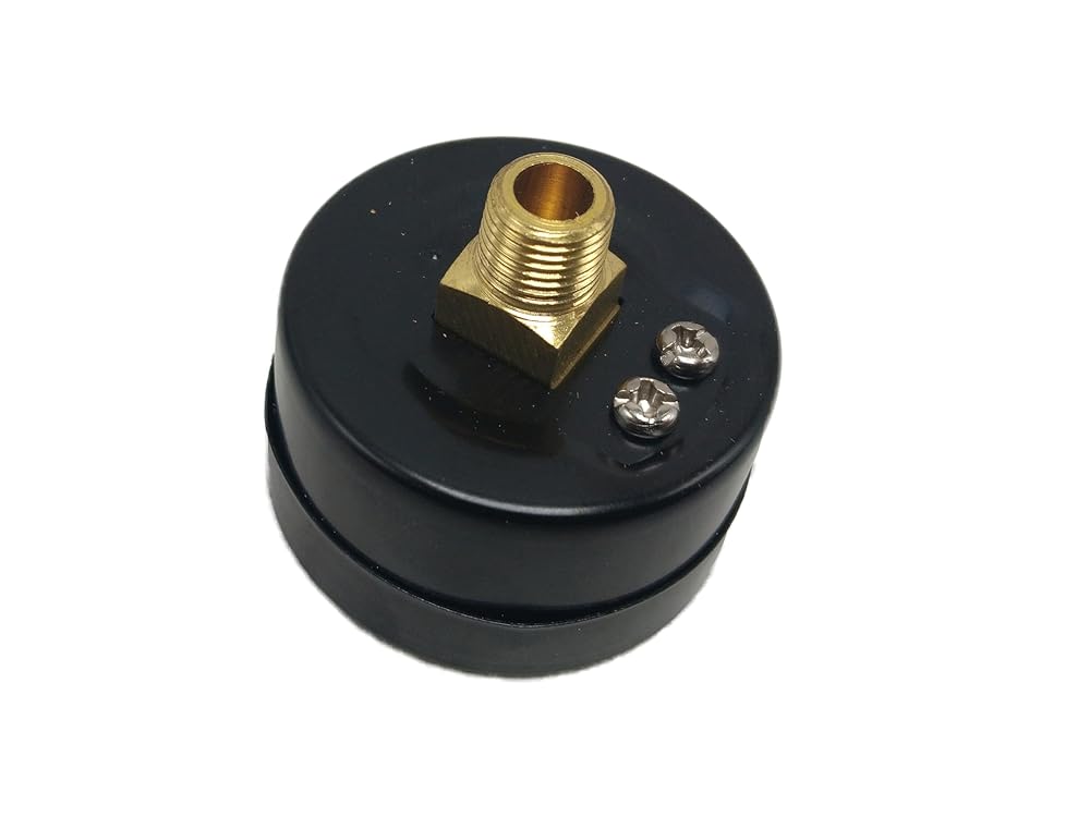 This compact gauge features a 1-inch mini round face, measuring pressure from 0 to 60 PSI. It has a 1/8-inch NPT / 10 - 32 female connection, making it versatile for both air and water services.