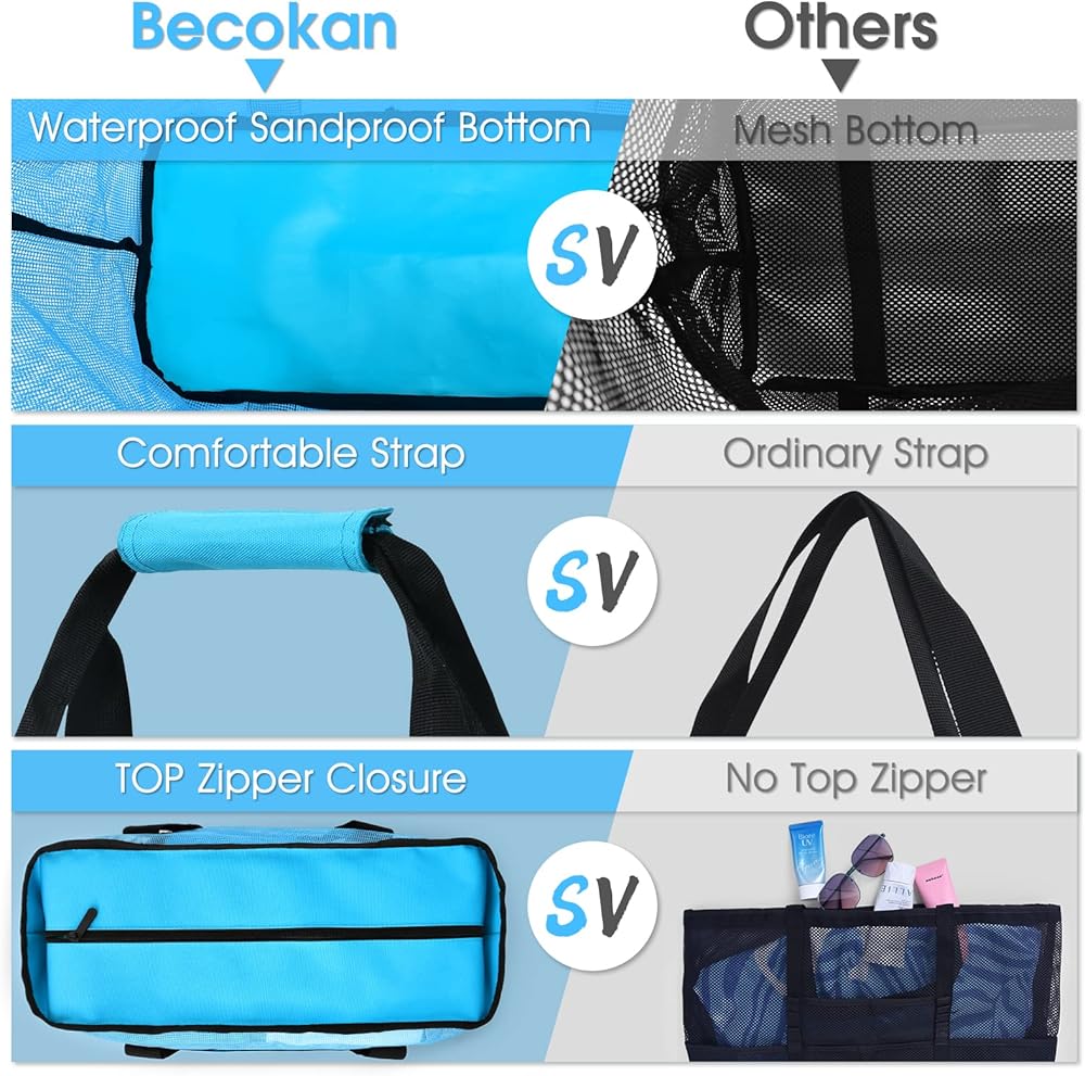 Versatile Use Carry Bag— Mesh & foldable tote bag, which is easy to clean and carry. Wide use for the beach tote bag, pool bag, swim] bag, laundry bag, work bag, one-week trip, road trip, reusable shopping bag, and so on. Enjoy your time with the Becokan bag!
