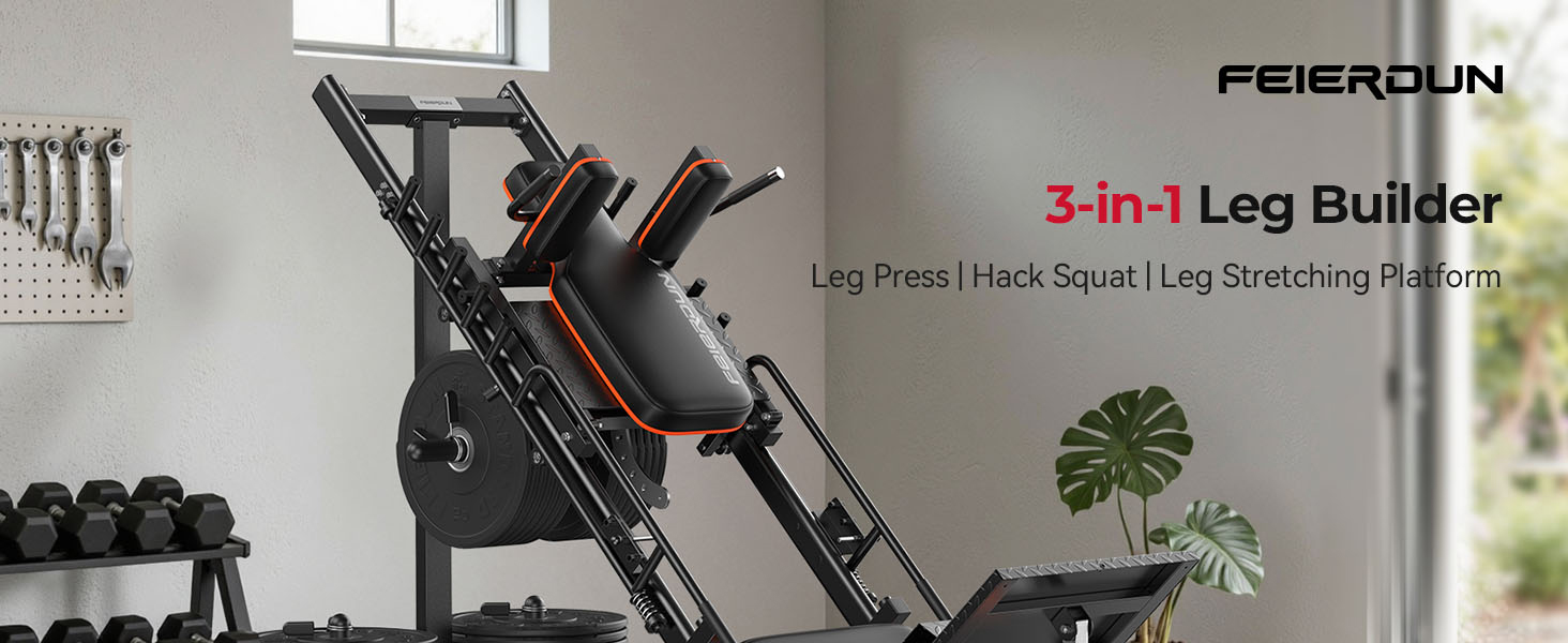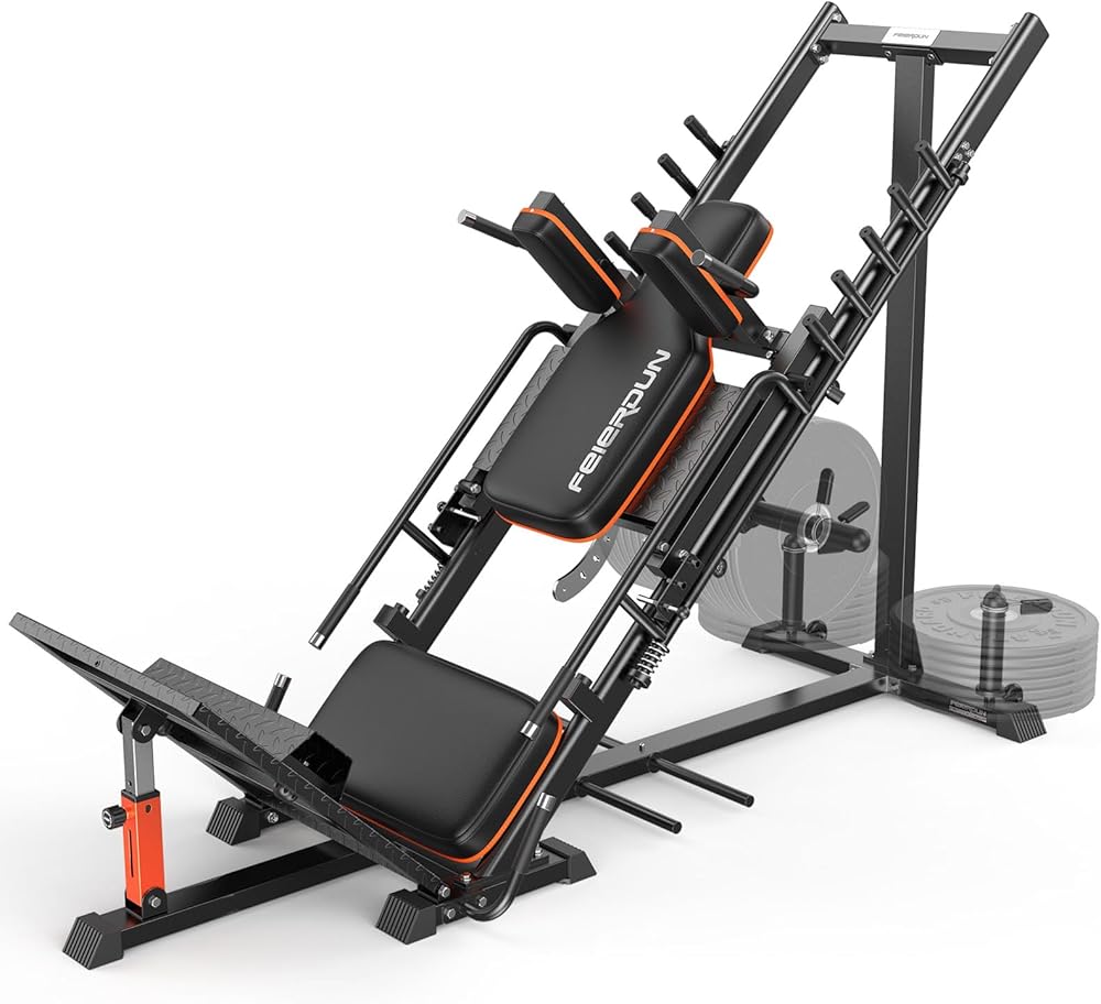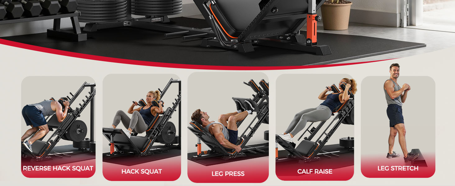 • 3-in-1 Lower Body Training Machine: Combines a leg press, hack squat machine, and dual-use stretch board in one compact, space-saving design. From heavy strength training and full-range squats to efficient post-workout stretching, everything you need for leg day is built into one machine.