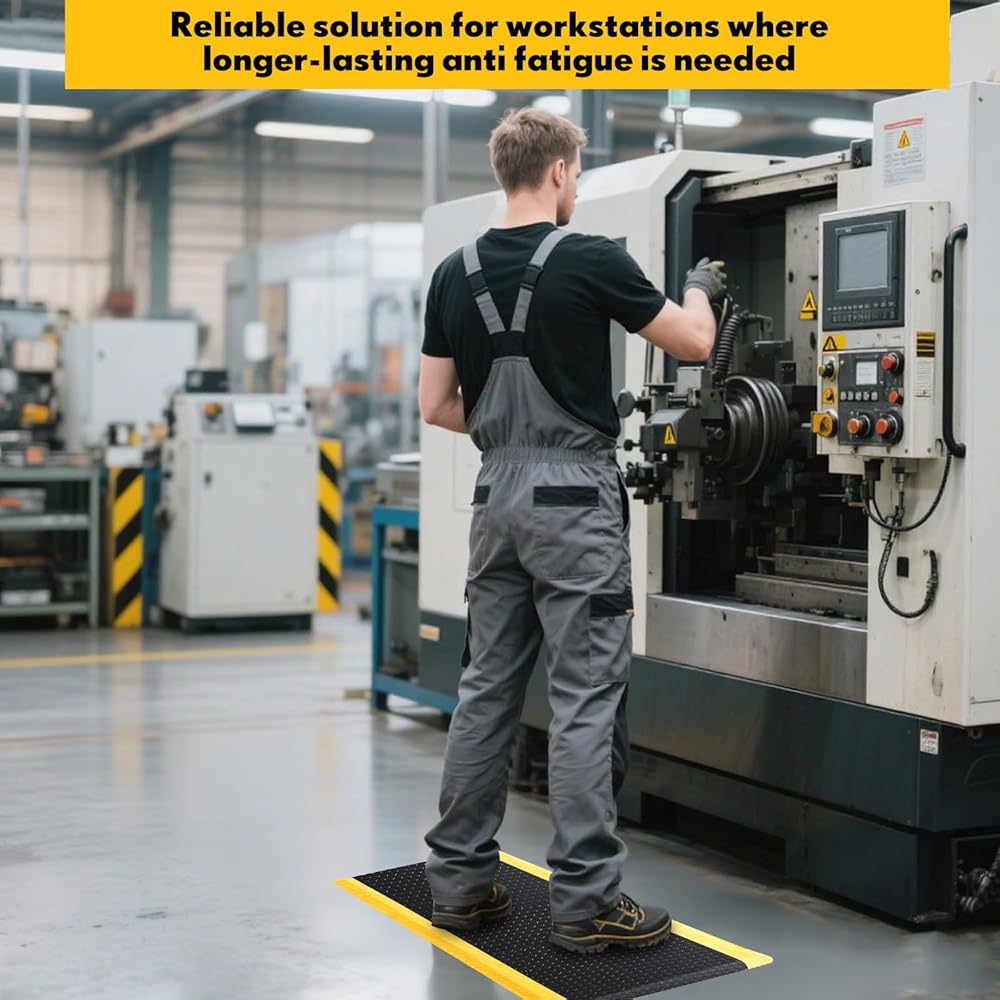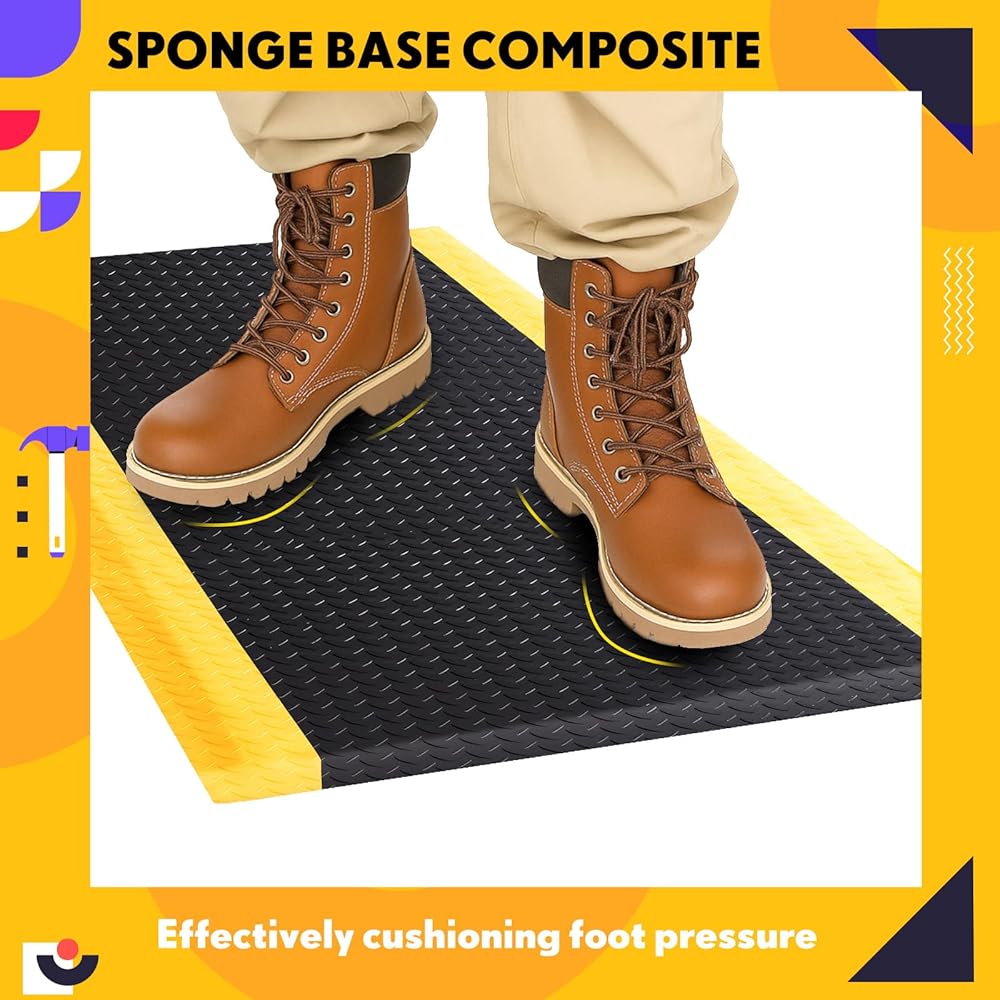Industrial-Grade Durability: the middle layer is made of EPDM sponge, providing a comfortable foot feel, The surface of the floor mat is made of anti-static PVC (rubber conducts static electricity); Maintains shape under pressure and withstands rigorous daily use in factories, garages, labs, or kitchens without cracking