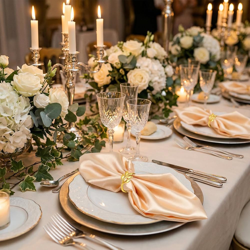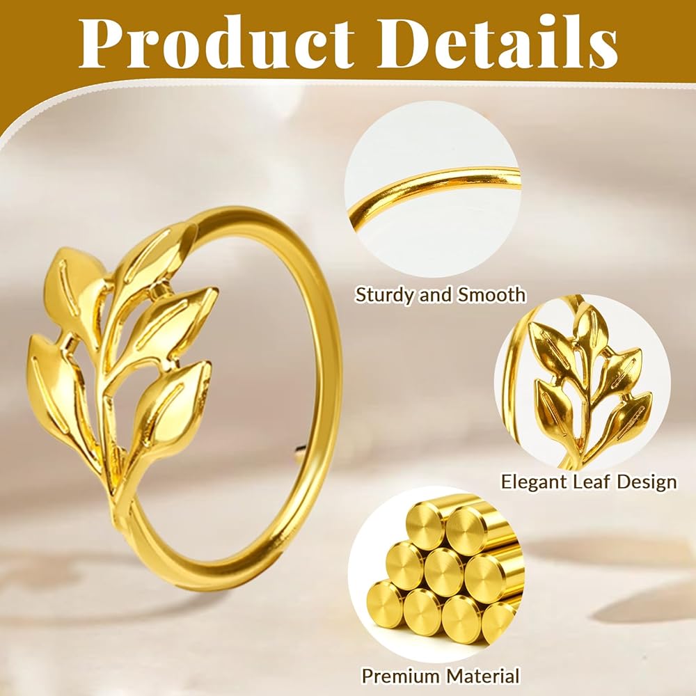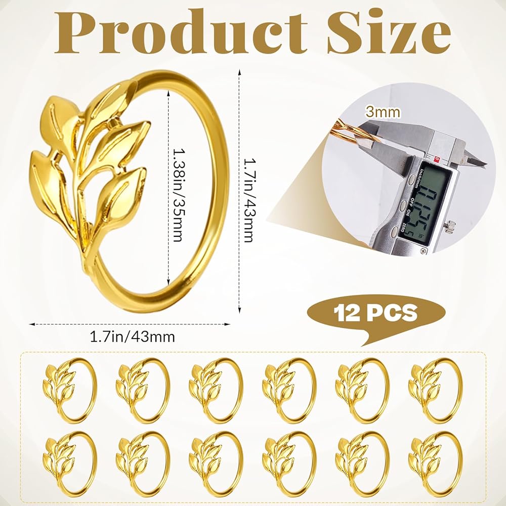 These 12 pcs gold napkin rings are made of high-quality metal, each with a diameter of 1.38in/35mm. You can fold napkins into any shape. The leaf napkin ring is sturdy and durable, unlikely to deform, resistant to wear, has a smooth and shiny surface, is not prone to fading, can be reused, and is suitable for various fabric napkins and towels, providing you with long-term usage value. These napkin ring holders are exquisitely designed and elegant in appearance. When gently placed on the napkin, they make your table look neat and elegant. They are very easy to use. Just simply fold your napkin and slide it into the napkin ring. You can fold it into any shape you like. After use, just rinse it clean with water. These napkin rings are suitable for weddings, birthdays, anniversaries, banquets, Thanksgiving, Christmas, Valentine's Day, dinner parties, etc. They are ideal decorations for family gatherings and restaurants. They add an elegant and refined touch to your table, leaving a lasting impression, providing your guests with an unforgettable dining experience