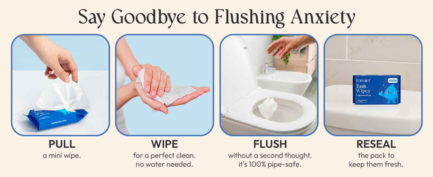 𝐓𝐑𝐔𝐋𝐘 𝐅𝐋𝐔𝐒𝐇𝐀𝐁𝐋𝐄 & 𝐁𝐈𝐎𝐃𝐄𝐆𝐑𝐀𝐃𝐀𝐁𝐋𝐄 — Made from 100% plant-derived fibers that break down quickly after flushing. Unlike regular wet wipes that clog pipes, Fomin flushable wipes for adults are designed with advanced dispersible materials that are sewer-safe and septic-safe. Flush with confidence — no plumber calls, no guilt