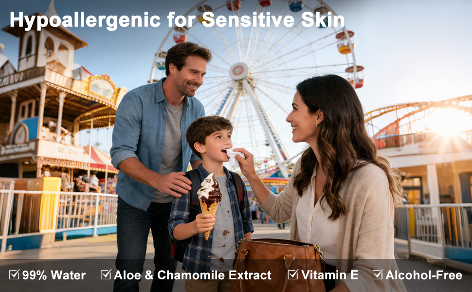 GENTLE & HYDRATING CARE — Flushable wipes travel size infused with Aloe Vera and Vitamin E deliver a soothing, hydrating clean. Our flushable wipes unscented are gentle on sensitive skin and made with 99% ultra‑pure EDI water for a fresh, clean feel with no added fragrance. Each wipe has just‑right moisture and dries quickly — not overly wet, for a fresher, more comfortable feel on sensitive skin. Gentle enough for babies and kids. Travel size wipes keep you comfortable anywhere.