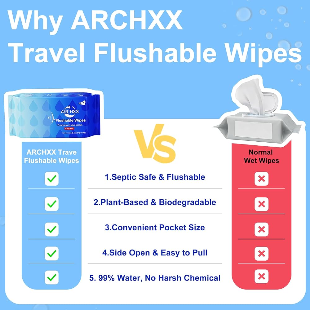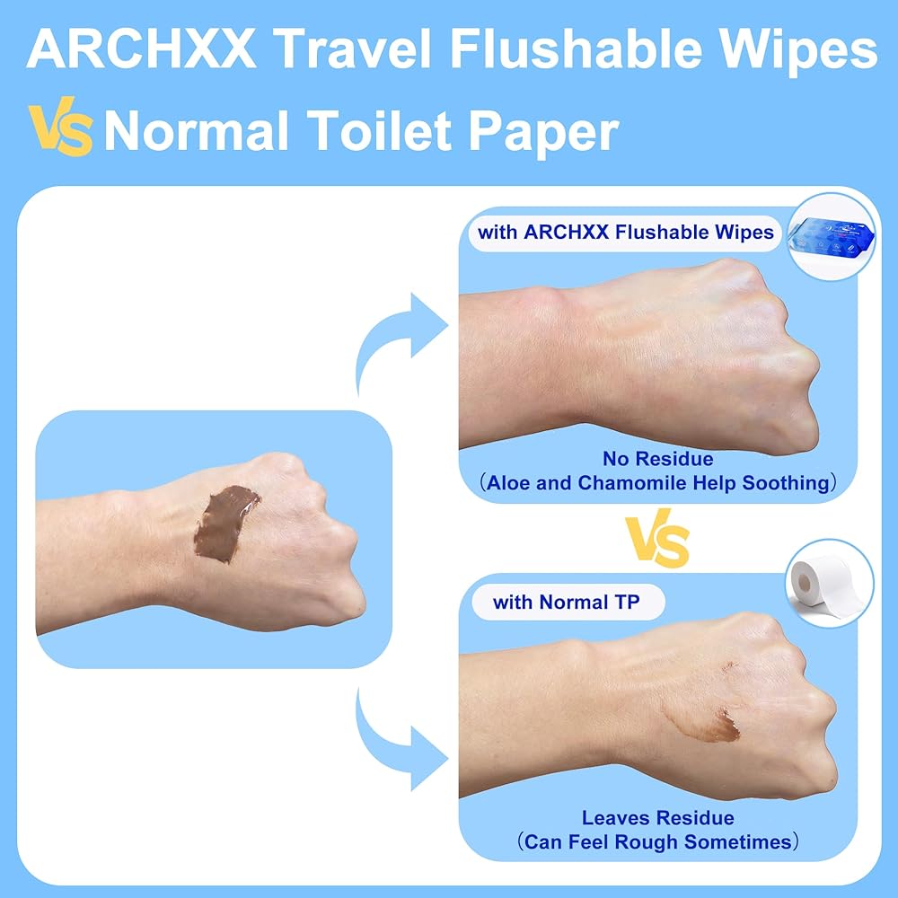 BREAKS DOWN EASILY AFTER FLUSHING — Eco‑friendly disposable wipes flushable and flushable bathroom wipes for adults are designed to break down easily in water for worry‑free flushing and are biodegradable for a more earth‑friendly choice. Soft booty wipes and tush wipes are great for home use, and flushable travel wipes keep you fresh on the go. More wipes and more packs in every box mean you always have flushable wipes ready when you need them.