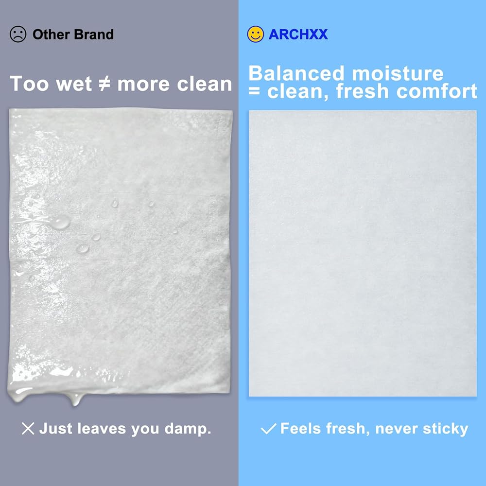 PH NEUTRAL & HYPOALLERGENIC — Made from plant fiber with balanced pH and hypoallergenic care. Butt wipes flushable adult are gentle on sensitive skin, while flushable wet wipes are free from alcohol — ideal bathroom wipes flushable adults for daily use. Perfect flushable wipes for women, flushable wipes kids, and wet wipes for adults for on‑the‑go fresh care.